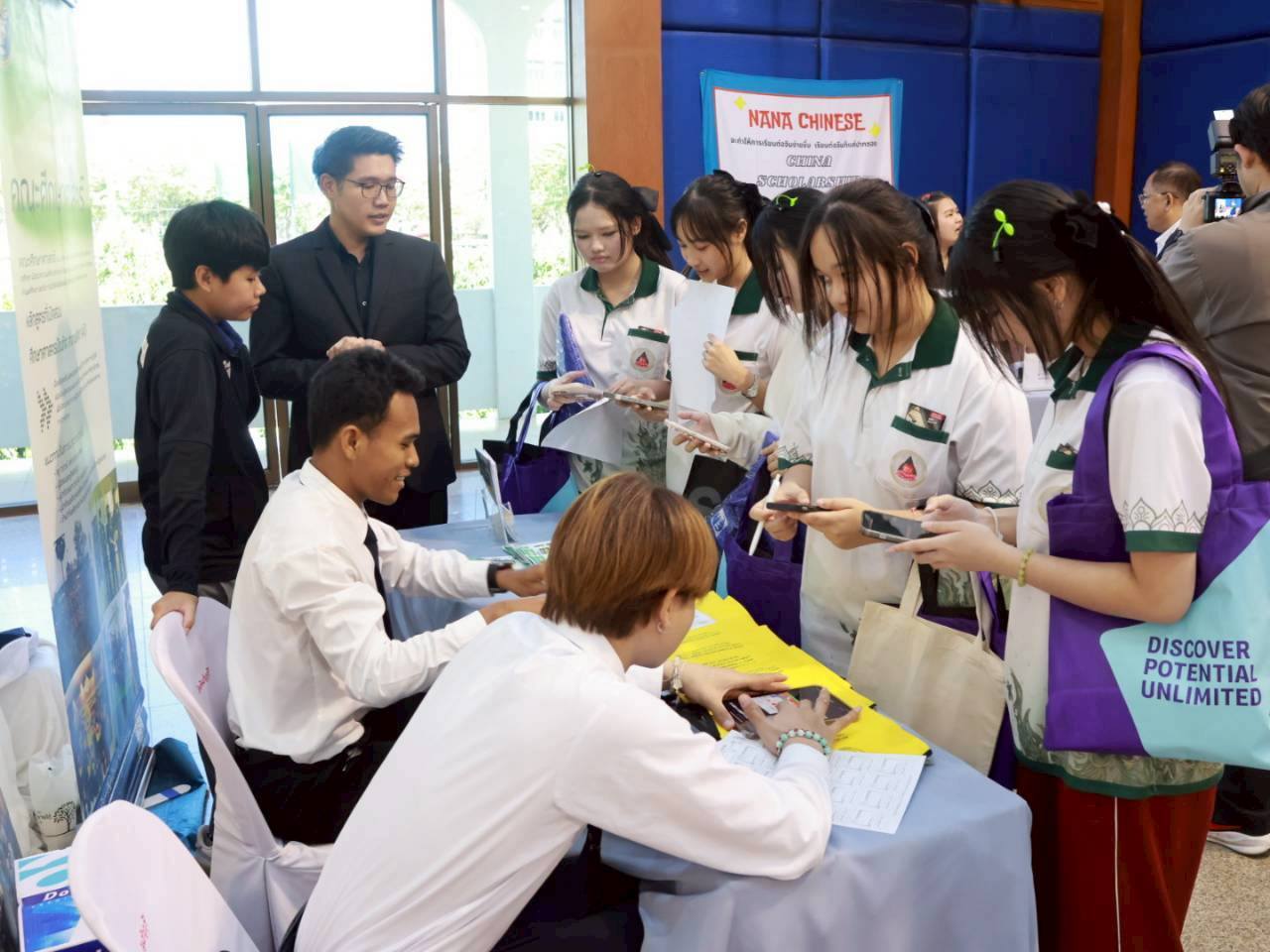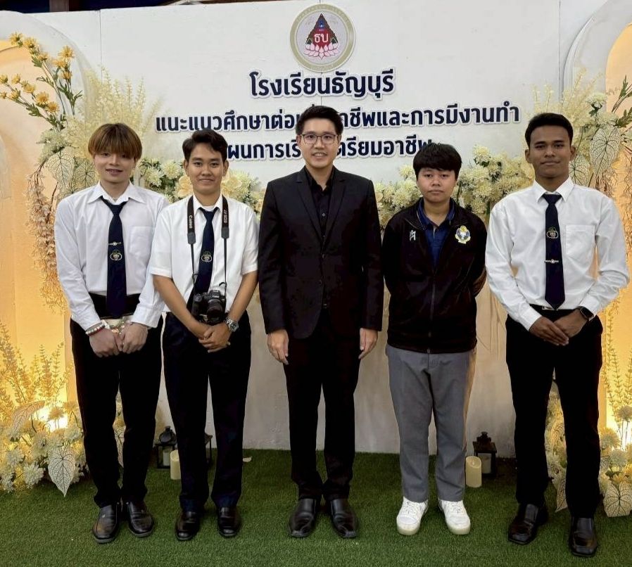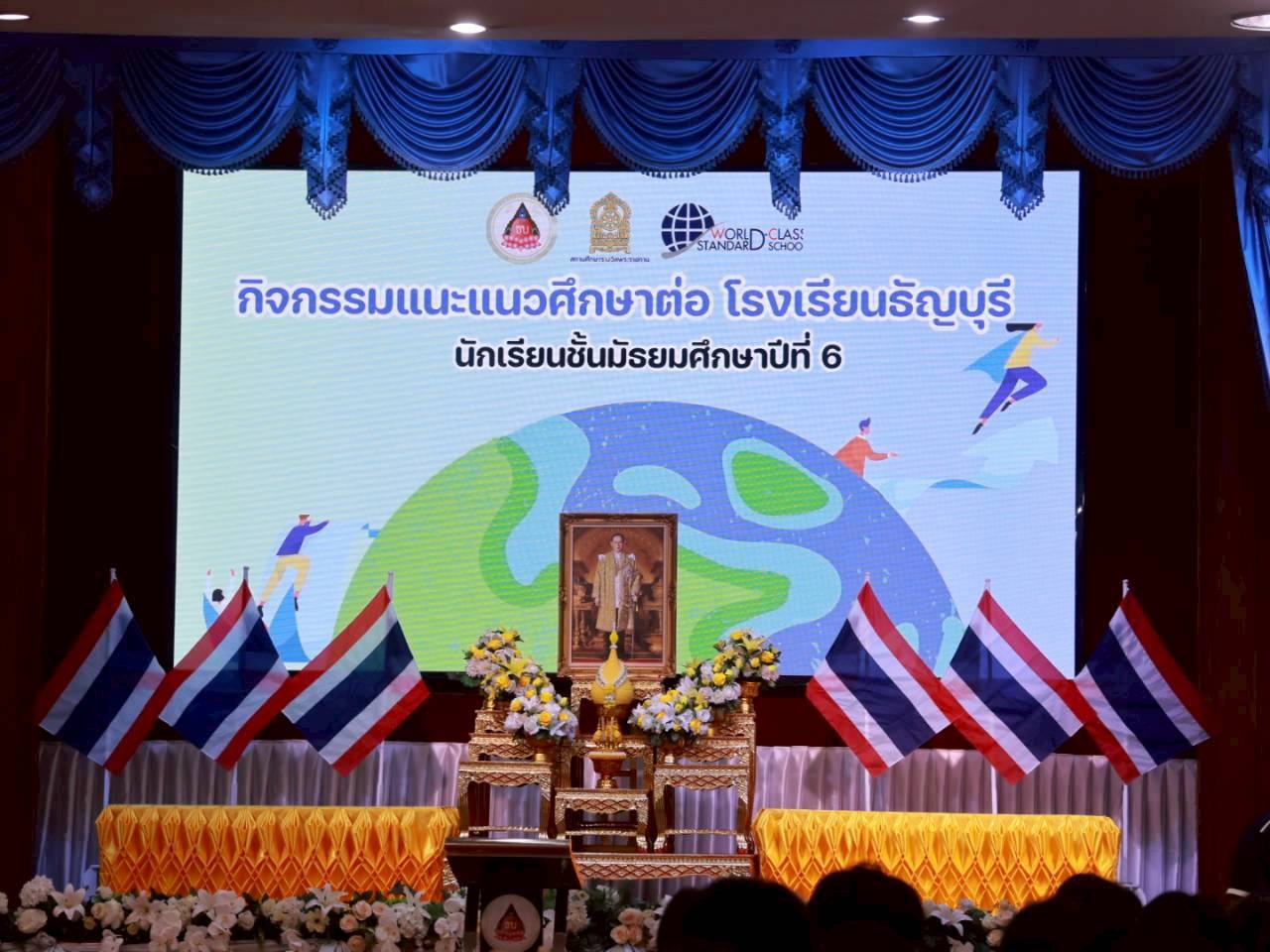 นายบรรณากิจบรรจง ทองจำปา มอบหมายให้ ดร.อภิณัฐ นิลศรี หัวหน้างานแนะแนวการศึกษา พร้อมด้วย นางสาวอนุสรา แก้วส่องแสง เจ้าหน้าที่งานแนะแนว พร้อมด้วยนักศึกษาคณะวิทยาศาสตร์ฯ และนักศึกษาคณะศิลปศาสตร์ เข้าร่วมกิจกรรมแนะแนวการศึกษา โรงเรียนธัญบุรี จังหวัดปทุมธานี