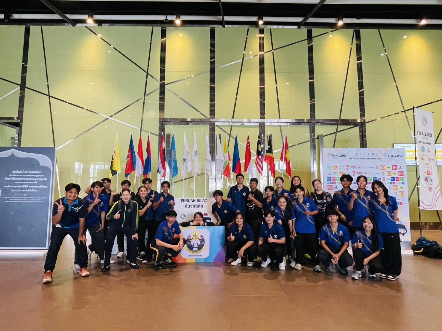 แห่งชาติ ประจำวิทยาเขตกรุงเทพ มอบหมายให้ ผศ.ดร.ธนกฤตา พร้อมด้วย คุณพรทิพย์ มณีโชติ ว่าที่ร้อยตรีพิมพ์ชนก ศรีอภิชาติ ผู้เชี่ยวชาญกีฬาปันจักสีลัต และ นางสาว เกวลิน บุญมี ศิษย์เก่าและอดีตนักกีฬาทีมชาติปันจักสีลัต นำนักศึกษาชมรมปันจักสีลัตและนักศึกษาที่สนใจเข้าร่วมชมการแข่งขันกีฬาปันจักสีลัต ที่ สนามเมืองทองธานี โดยมีศิษย์เก่าของ มกช กรุงเทพ เป็นนักีฬาปันจักสีลัตทีมชาติไทย เข้าร่วมแข่งวันนี้ด้วย โดยผลไทยชนะ สิงค์โปร์ แบบดุเดือด