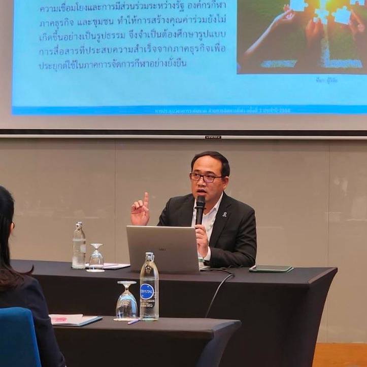 ในการนำเสนอผลงานวิจัยเรื่อง“การพัฒนานโยบายการสื่อสารเพื่อสร้างคุณค่าร่วมในการจัดการกีฬาตามแนวทางเศรษฐกิจสร้างสรรค์” ในการประชุมวิชาการระดับชาติ The 3rd National Conference in Sport Management 2025