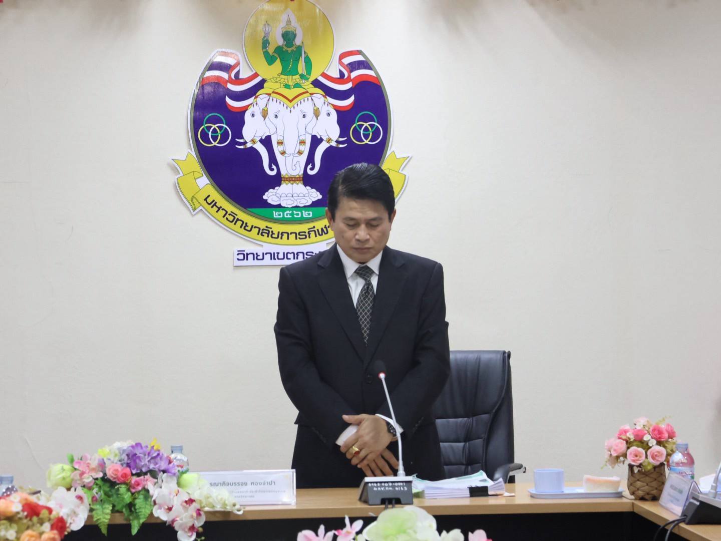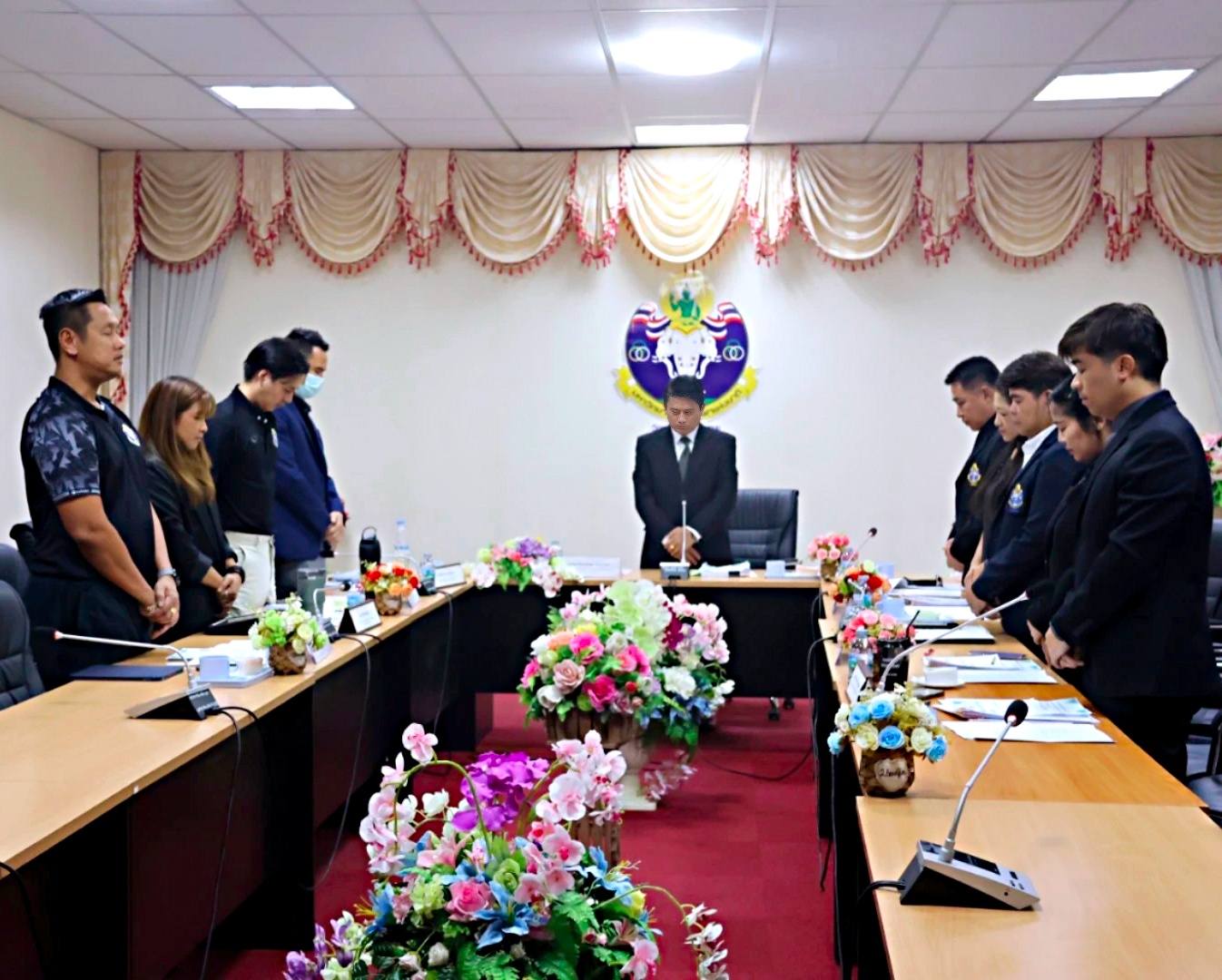 โดยก่อนเริ่มการประชุม รองอธิการบดีฯ พร้อมด้วยผู้เข้าร่วมประชุมทุกท่าน ได้ร่วมกันยืนสงบนิ่งเพื่อไว้อาลัยแด่สมเด็จพระนางเจ้าสิริกิติ์ พระบรมราชินีนาถ พระบรมราชชนนีพันปีหลวง ด้วยความสำนึกในพระมหากรุณาธิคุณอันหาที่สุดมิได้