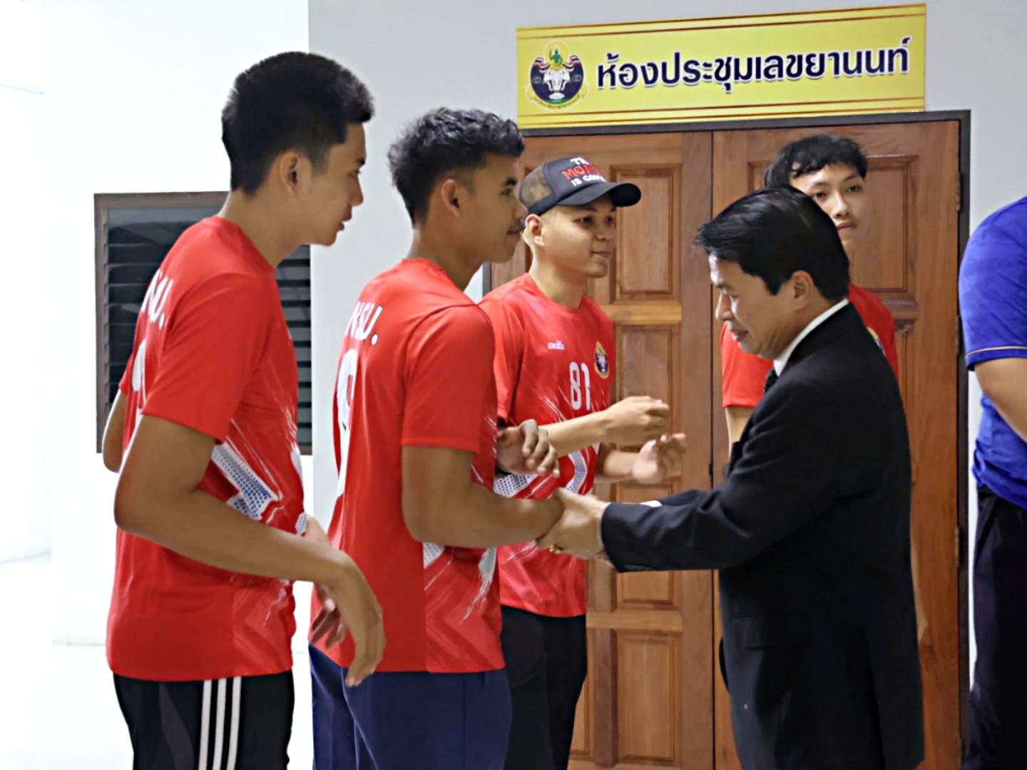 ทีมแฮนด์บอลชาย มหาวิทยาลัยการกีฬาแห่งชาติ (TNSU) เข้าพบ นายบรรณากิจบรรจง ทองจำปา รองอธิการบดีมหาวิทยาลัยการกีฬาแห่งชาติ ประจำวิทยาเขตกรุงเทพ เพื่อรายงานการฝึกซ้อมและเตรียมความพร้อม ก่อนเข้าร่วมการแข่งขัน #อินทนิลเกมส์ กีฬามหาวิทยาลัยแห่งประเทศไทย ครั้งที่ 31 ณ มหาวิทยาลัยแม่โจ้ จังหวัดเชียงใหม่