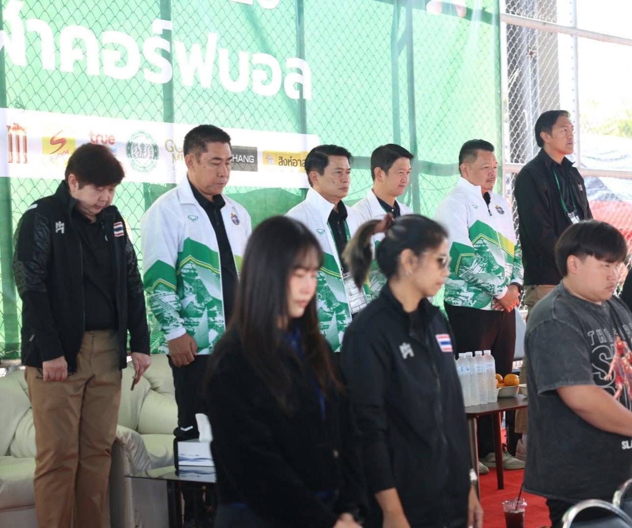 นายบรรณากิจบรรจง ทองจำปา รองอธิการบดีมหาวิทยาลัยการกีฬาแห่งชาติ ประจำวิทยาเขตกรุงเทพ พร้อมด้วย ผู้ช่วยศาสตราจารย์คมกริช ฆ้องนำโชค รองอธิการบดีมหาวิทยาลัยการกีฬาแห่งชาติ ประจำวิทยาเขตสุพรรณบุรี และ ผศ.ดร.ธนชาต ถวิลวิชา ผู้ช่วยอธิการบดีฝ่ายบริหาร ร่วมชมการแข่งขันคอร์ฟบอลรอบชิงชนะเลิศ