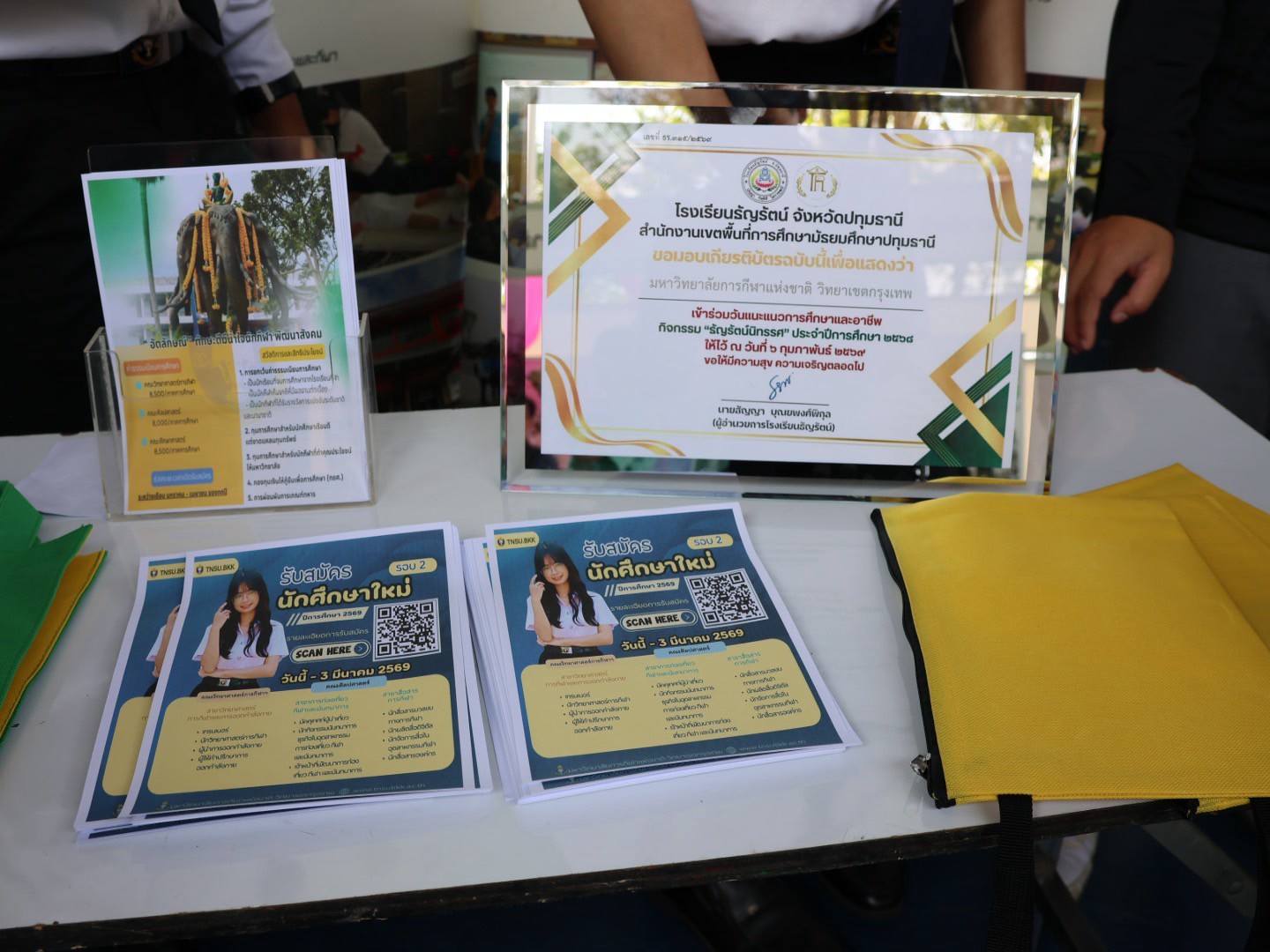 นายบรรณากิจบรรจง ทองจำปา มอบหมายให้ ดร.อภิณัฐ นิลศรี หัวหน้างานแนะแนวการศึกษา พร้อมด้วย นางสาวอนุสรา แก้วส่องแสง เจ้าหน้าที่งานแนะแนว พร้อมด้วยนักศึกษาทั้งสามคณะ เข้าร่วมกิจกรรมแนะแนวการศึกษา โรงเรียนธัญรัตน์ จังหวัดปทุมธานี