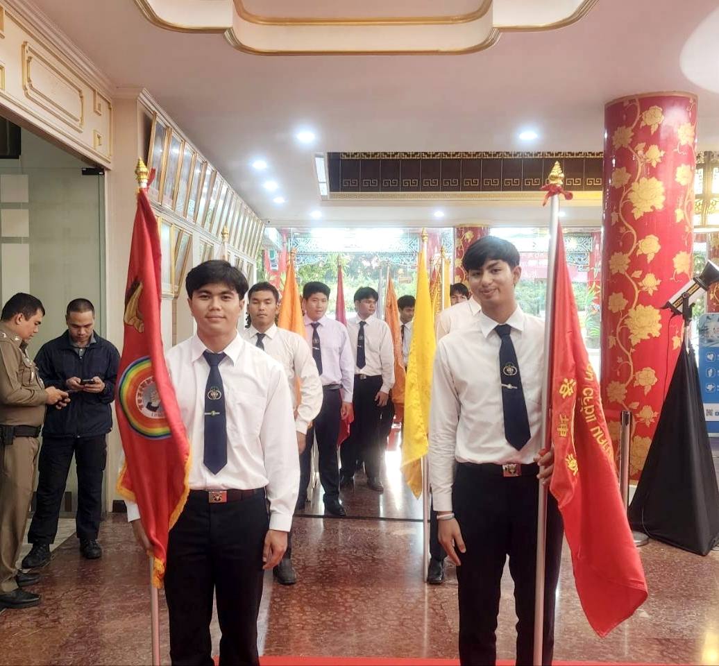 นายบรรณากิจบรรจง ทองจำปา รองอธิการบดีมหาวิทยาลัยการกีฬาแห่งชาติ ประจำวิทยาเขตกรุงเทพ มอบหมายให้ ดร.ชลาฎล บุญศรี รองคณบดีคณะศึกษาศาสตร์และหัวหน้างานบริการวิชาการ นำนักศึกษาปฏิบัติหน้าที่ขบวนธง ในกิจกรรม 50 ปี แห่งความสัมพันธ์ทางการทูตไทย – จีน แต้จิ่วสัมพันธ์ ครั้งที่ 14″ ณ สมาคมแต้จิวแห่งประเทศไทย กรุงเทพมหานคร