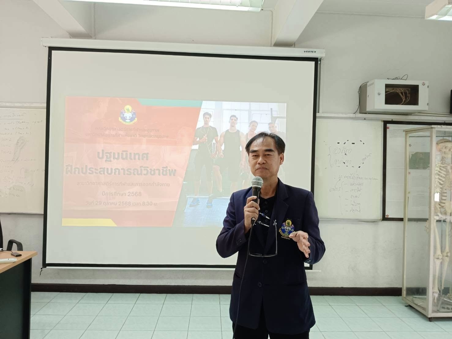 วันที่ 29 ตุลาคม 2568 นายบรรณากิจบรรจง ทองจำปา รองอธิการบดีมหาวิทยาลัยการกีฬาแห่งชาติ ประจำวิทยาเขตกรุงเทพ เป็นประธานในการเปิดโครงการพัฒนาประสบการณ์วิชาชีพ กิจกรรมปฐมนิเทศนักศึกษาฝึกประสบการณ์วิชาชีพ นักศึกษาชั้นปีที่ 4 สาขาวิทยาศาสตร์การกีฬาและการออกกำลังกาย คณะวิทยาศาสตร์การกีฬาและสุขภาพ ณ ห้องทองกวาว 1