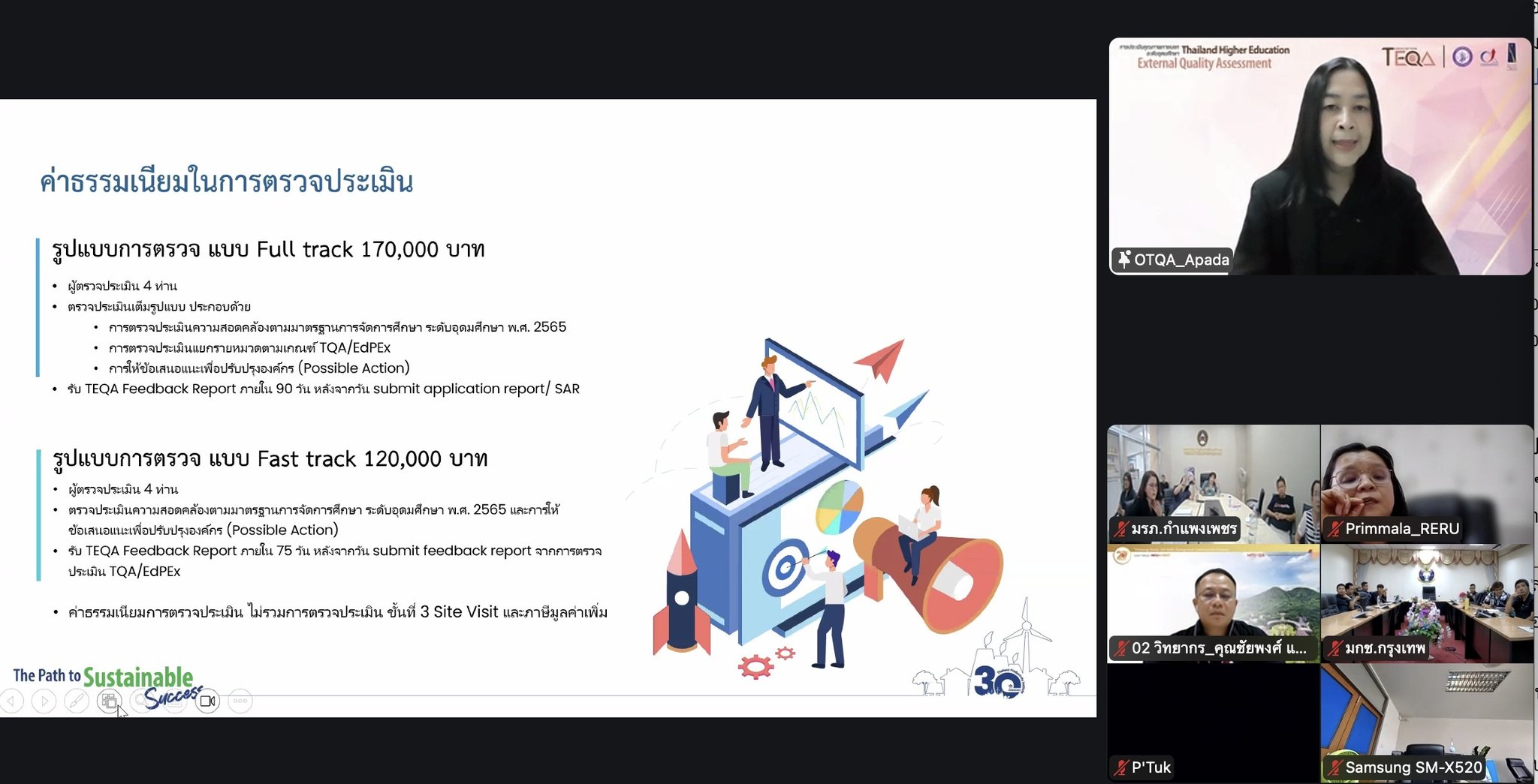 นายบรรณากิจบรรจง ทองจำปา รองอธิการบดีมหาวิทยาลัยการกีฬาแห่งชาติ ประจำวิทยาเขตกรุงเทพ พร้อมด้วยผู้บริหารและคณาจารย์ เข้าร่วมประชุมแนวทางการประเมินคุณภาพภายนอก ระดับอุดมศึกษา ในปี พ.ศ. ๒๕๖๙ ผ่านโปรแกรม Zoom Meeting การประชุมดังกล่าวจัดขึ้นเพื่อสร้างความเข้าใจเกี่ยวกับแนวทางการประเมินคุณภาพภายนอกระดับอุดมศึกษา ตามกรอบเกณฑ์รางวัลคุณภาพแห่งชาติ (Thailand Quality Award: TQA) และเกณฑ์คุณภาพการศึกษาเพื่อการดำเนินการที่เป็นเลิศ (Education Criteria for Performance Excellence: EdPEx) รวมถึงการแลกเปลี่ยนประสบการณ์จากสถาบันอุดมศึกษาที่ได้นำเกณฑ์ดังกล่าวไปใช้พัฒนาองค์กรอย่างเป็นรูปธรรม ตลอดจนการชี้แจงขั้นตอนการสมัคร