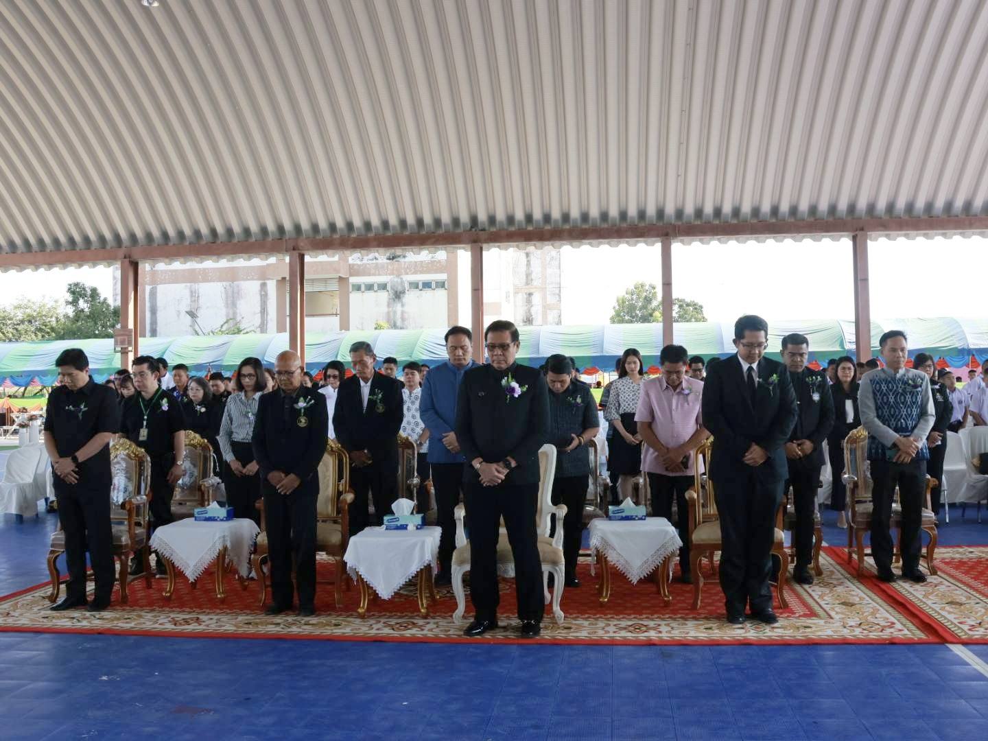 ซึ่งก่อนเข้าสู่พิธีการ ผศ.ดร.วีรศักดิ์ วิศาลาภรณ์ อธิการบดีมหาวิทยาลัยการกีฬาแห่งชาติ ประธานในพิธีพร้อมผู้เข้าร่วมทุกท่านร่วมกันยืนสงบนิ่ง 93 วินาที เพื่อถวายความอาลัยแด่สมเด็จพระนางเจ้าสิริกิติ์ พระบรมราชินีนาถ พระบรมราชชนนีพันปีหลวง ด้วยความสำนึกในพระมหากรุณาธิคุณอันหาที่สุดมิได้