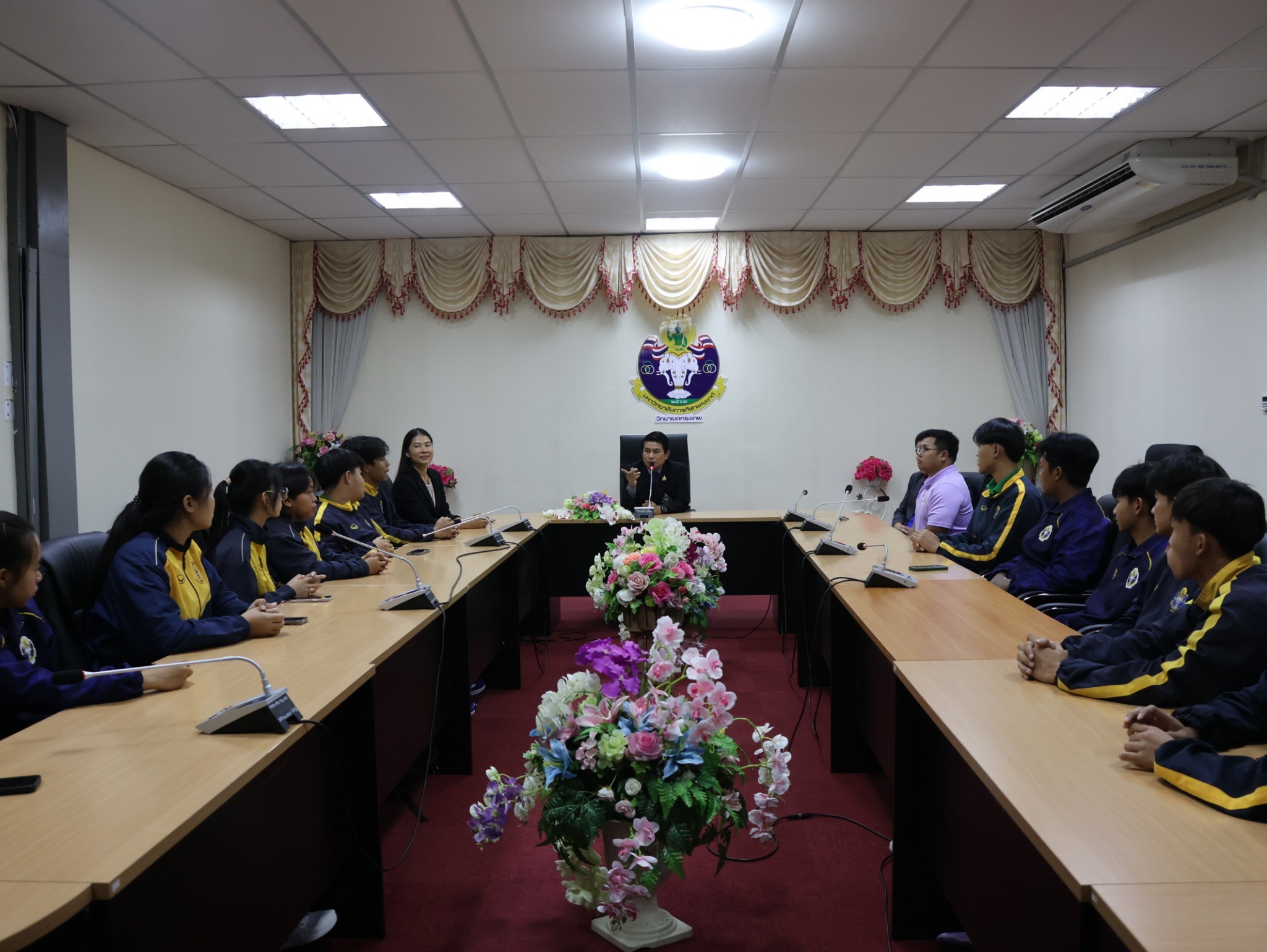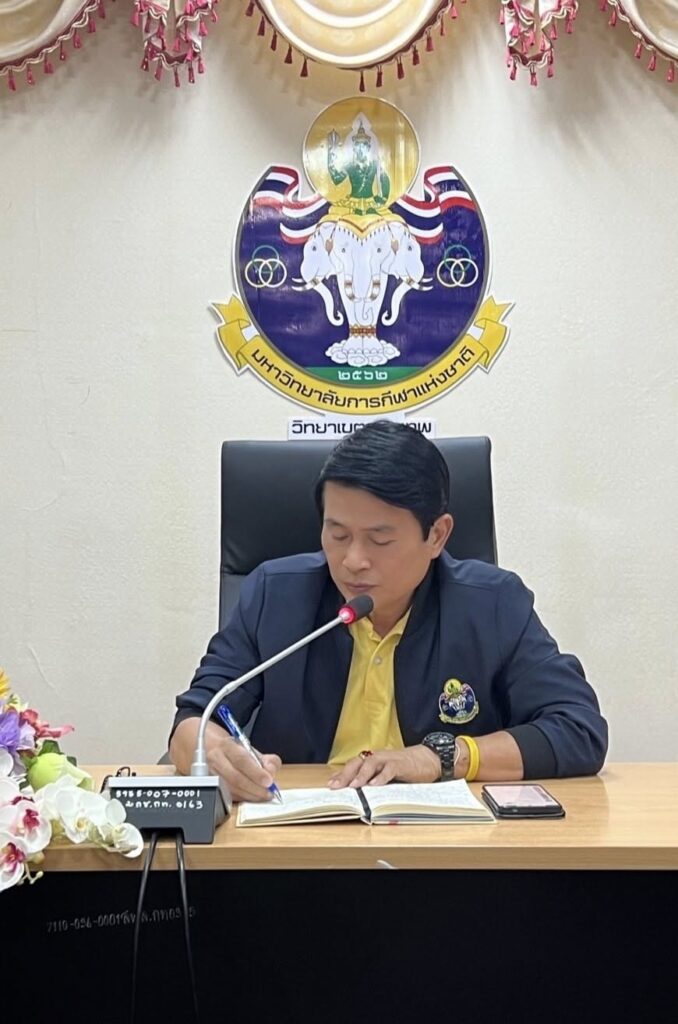 วันที่ 21 ตุลาคม 2568 นายบรรณากิจบรรจง ทองจำปา รองอธิการบดีมหาวิทยาลัยการกีฬาแห่งชาติ ประจำวิทยาเขตกรุงเทพ ให้โอวาทแก่นักกีฬาดาบไทย ที่จะเข้าร่วมการแข่งขันกีฬาการแข่งขันกีฬาดาบไทย ประจำปี 2568 “ชิงถ้วยพระราชทาน สมเด็จพระกนิษฐาธิราชเจ้า กรมสมเด็จพระเทพรัตนราชสุดาฯ สยามบรมราชกุมารี” ณ ห้องประชุมเลขยานนท์ ชั้น 2 สำนักรองอธิการบดี มหาวิทยาลัยการกีฬาแห่งชาติ วิทยาเขตกรุงเทพ