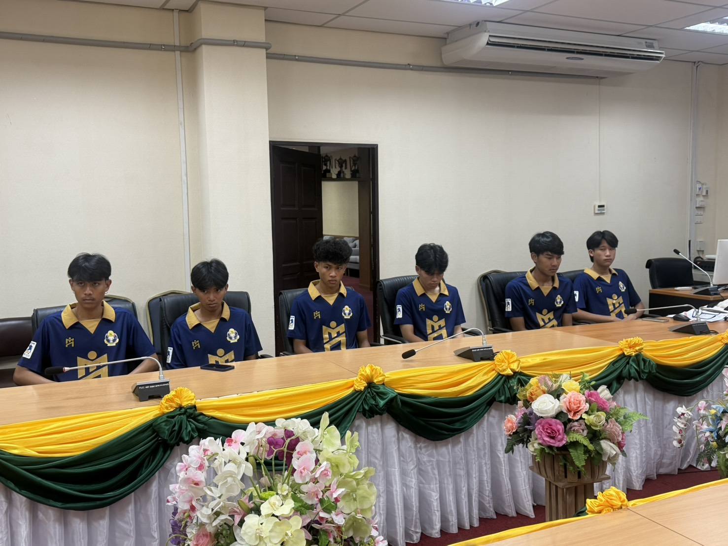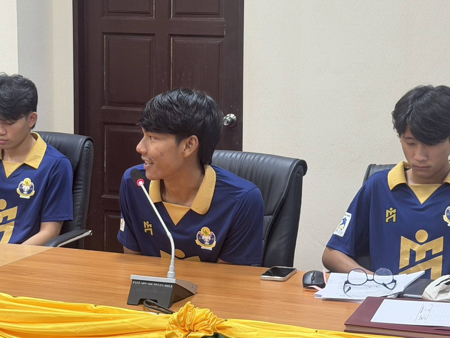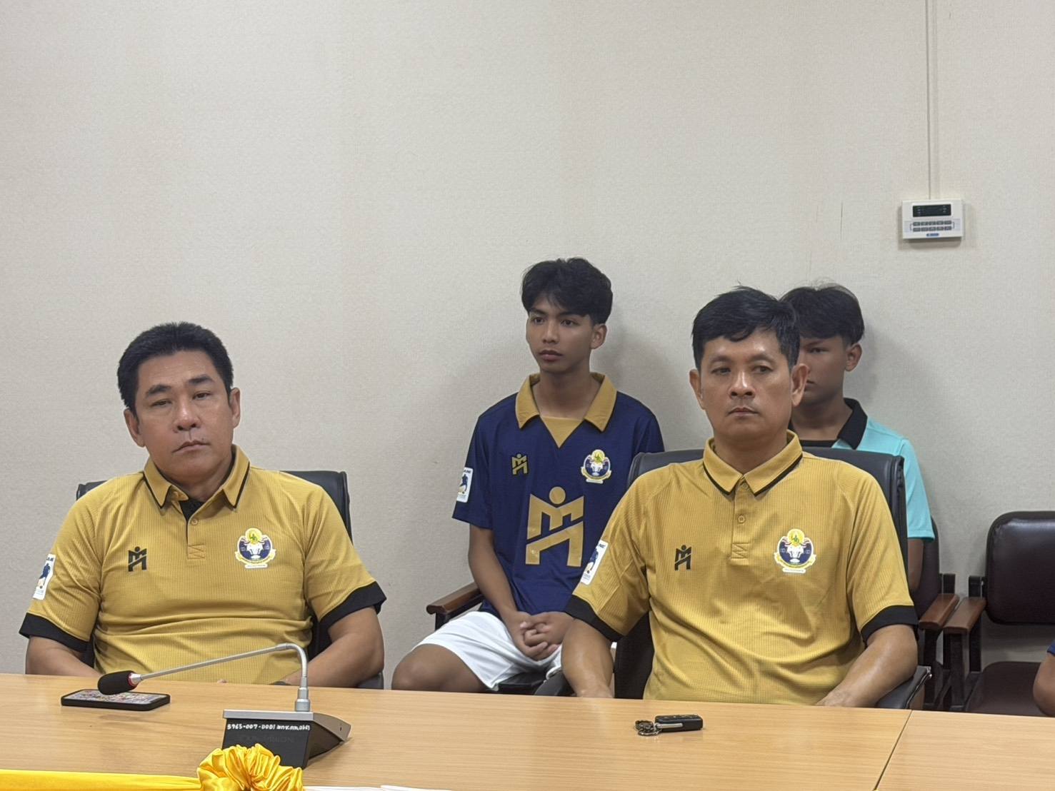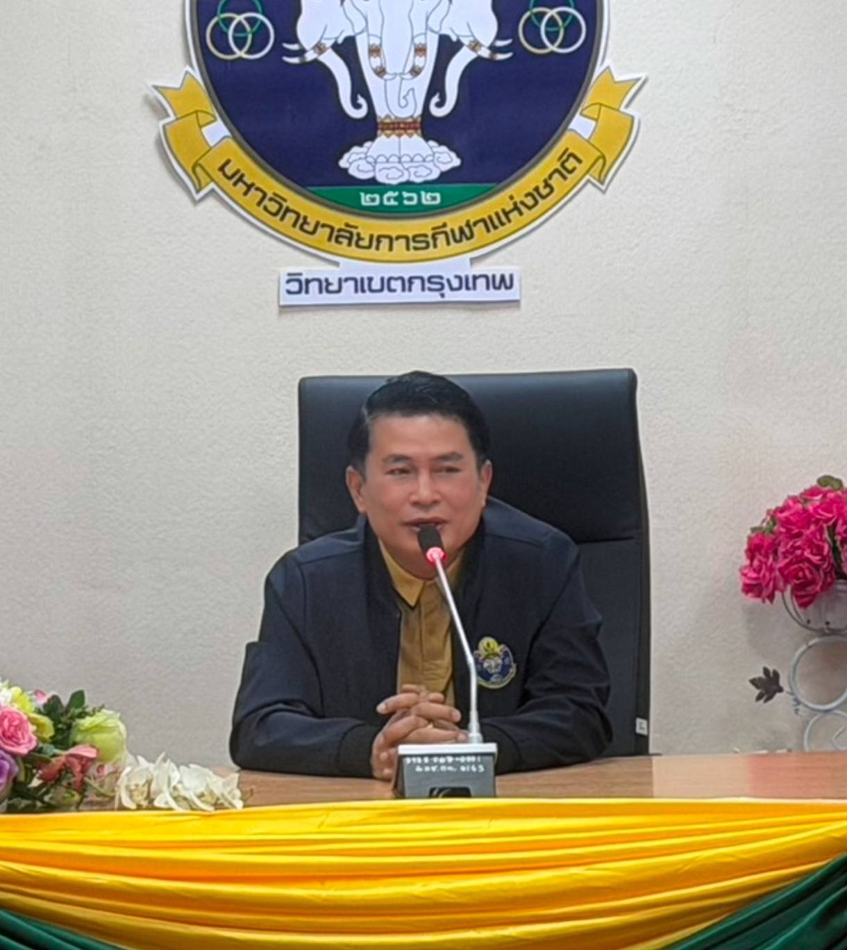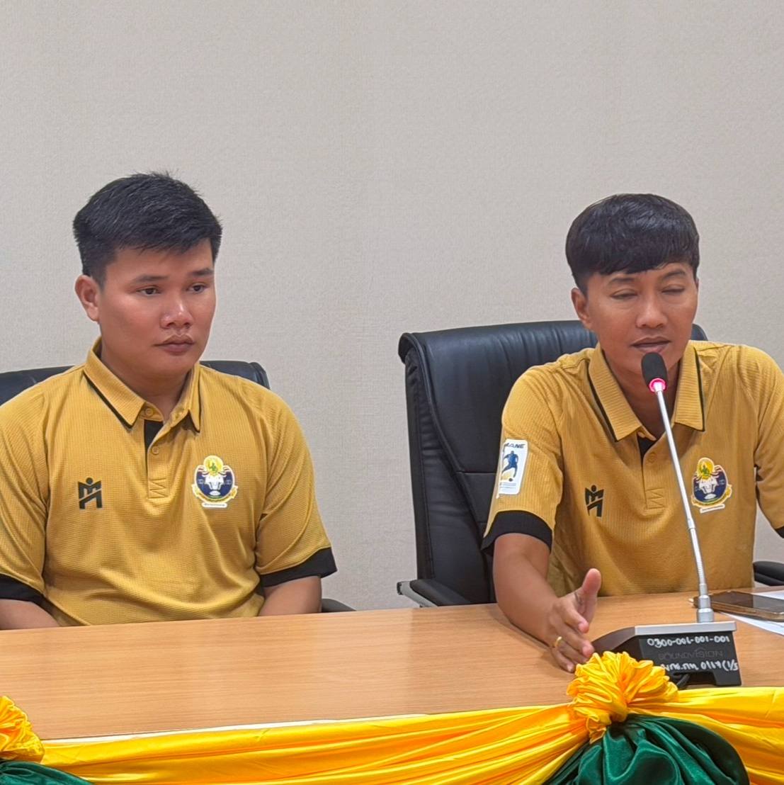นายบรรณากิจบรรจง ทองจำปา รองอธิการมหาวิทยาลัยการกีฬาแห่งชาติ ประจำวิทยาเขตกรุงเทพ มอบโอวาทแก่ทีมนักกีฬาฟุตซอล มกช.กรุงเทพ ที่มีกำหนดเข้าร่วมการแข่งขันรายการ IMANE THAILAND FUTSAL FRESHY UNVERSITY THE CHAMPIONSHIP 2025 – 2026 ระหว่างวันที่ 28 มีนาคม – 7 เมษายน 2569 นี้